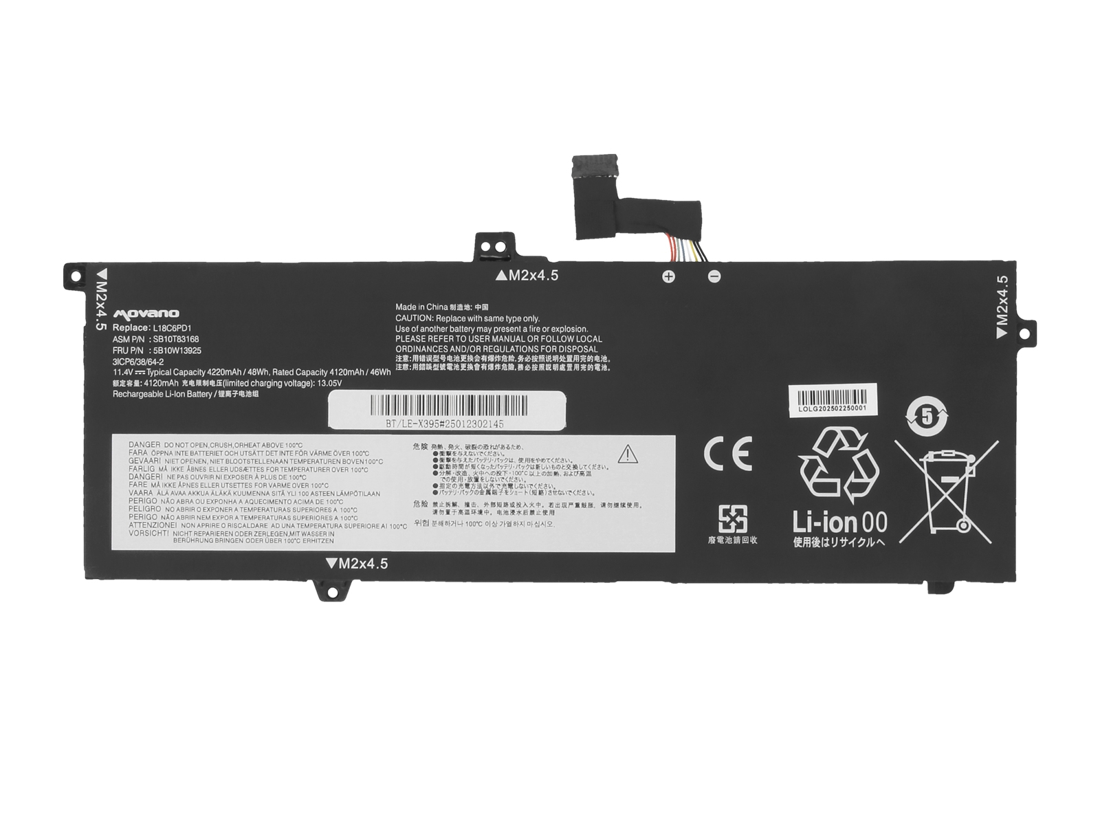 Bateria Movano do Lenovo Thinkpad X13 Gen 1, X390, X395