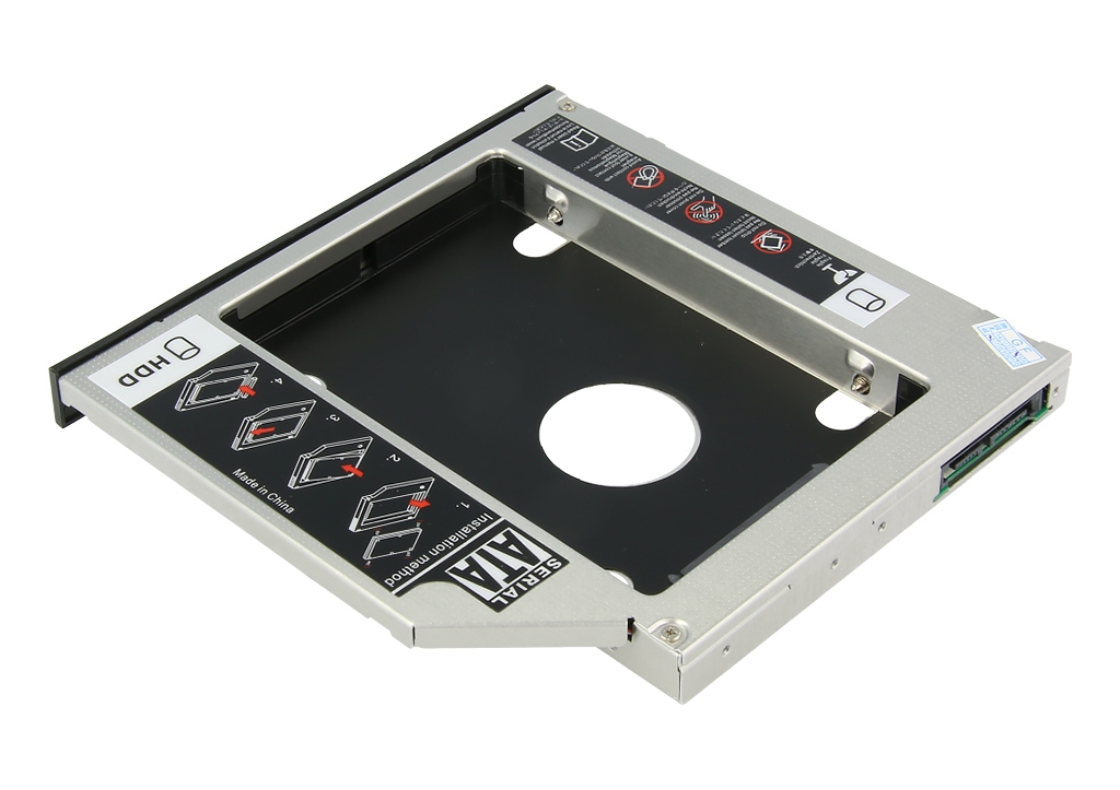 Aluminiowa, fabrycznie nowa kieszeń na dysk HDD 2.5 cala montowana w miejsce napędu optycznego komputerów przenośnych.