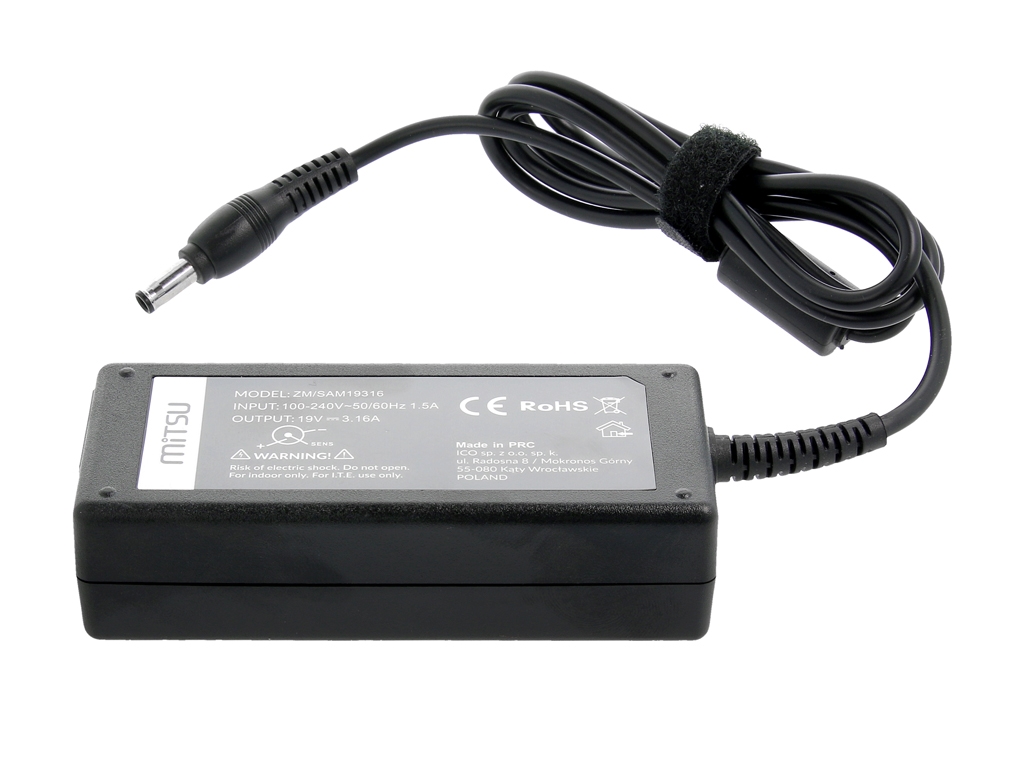 Zasilacz Mitsu 19v 3.16a (5.5×3.0 pin) 60W do Samsung