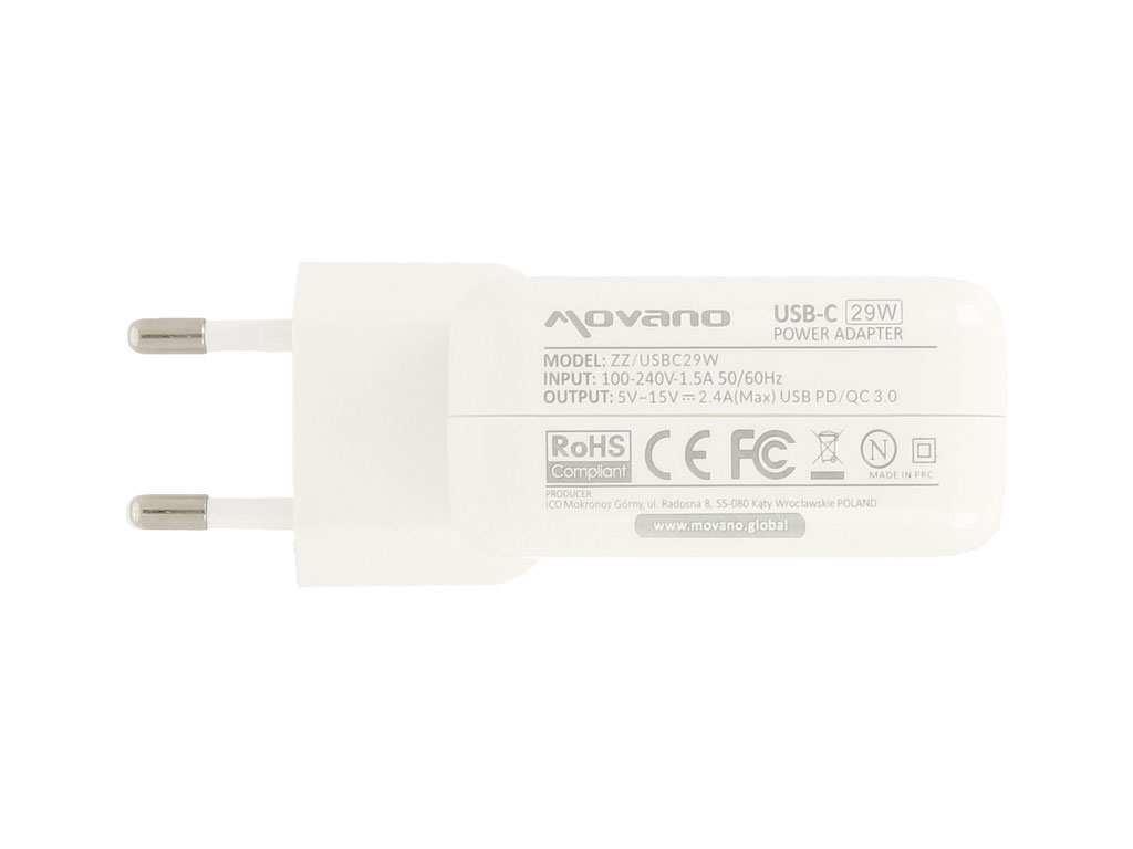 Zasilacz Movano 29W USB type C USB-C (white)